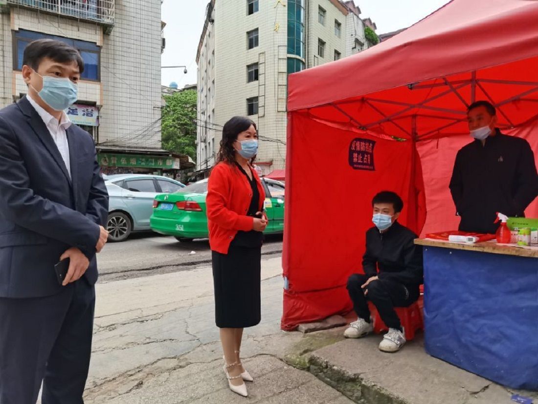 王莉一行先后檢查了州建商場(chǎng)兩個(gè)主要出入口的防疫點(diǎn)設(shè)置情況、值班人員安排和防疫物資配備情況,聽(tīng)取了物業(yè)公司黨支部書記、董事長(zhǎng)巫宿琴及商場(chǎng)分管副經(jīng)理閔毅匯報(bào)州建商場(chǎng)的基本情況及疫情防控工作。王莉?qū)爡^(qū)的疫情防控工作給予了肯定,對(duì)存在的不足提出了整改意見(jiàn)。