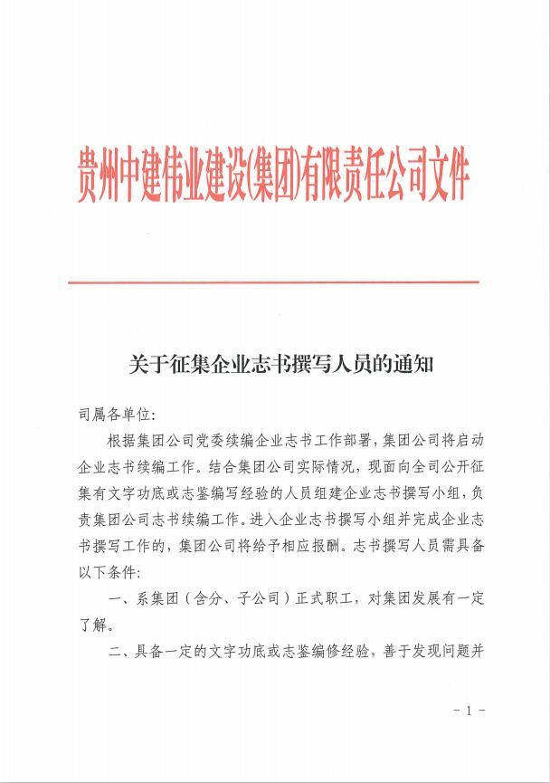 中建偉業(yè)集團(tuán)關(guān)于征集企業(yè)志書撰寫人員的通知