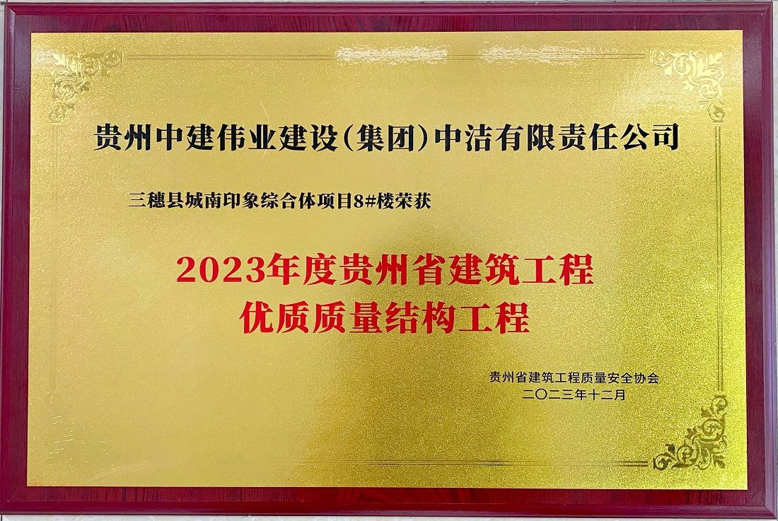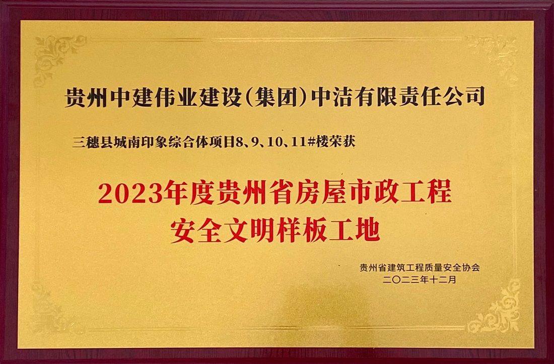 中潔公司三穗縣城南印象綜合體項目被評為2023年度貴州省“房屋市政工程安全文明樣板工地”“建筑工程優(yōu)質(zhì)質(zhì)量結(jié)構(gòu)工程”