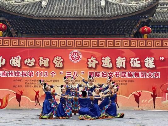 3月6日,黔東南州婦聯(lián)聯(lián)合州直機關(guān)工委、州民宗委、州文體廣電旅游局、州總工會、團州委共同舉辦的“巾幗心向黨 奮進新征程 鑄牢中華民族共同體意識”民族舞蹈大賽在凱里市下司鎮(zhèn)舉行,集團工會積極組建舞蹈隊參加比賽,榮獲最佳風(fēng)采獎。